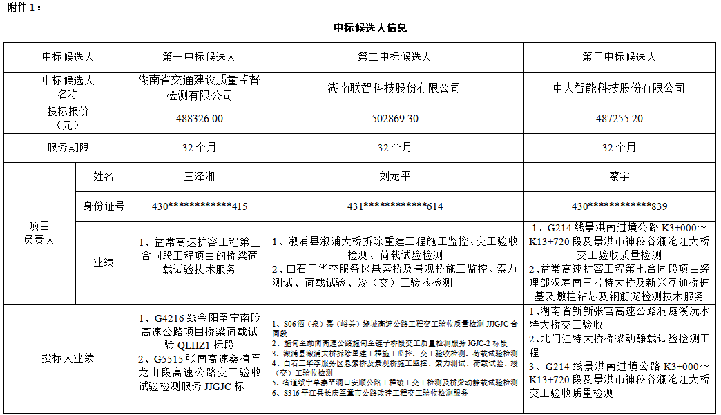 附件1:中標(biāo)候選人信息及附件2:不合格投標(biāo)人名單