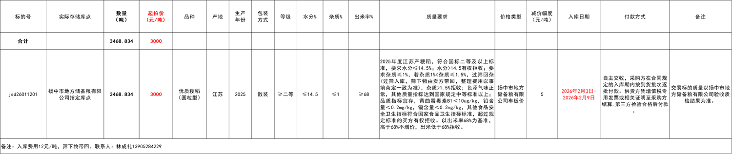 2.交收方式:自主交收。雙方同意,供貨方憑蓋章合同和身份證明到委托方交貨。供貨方交貨期限為2026年2月3日-2026年2月9日前。
