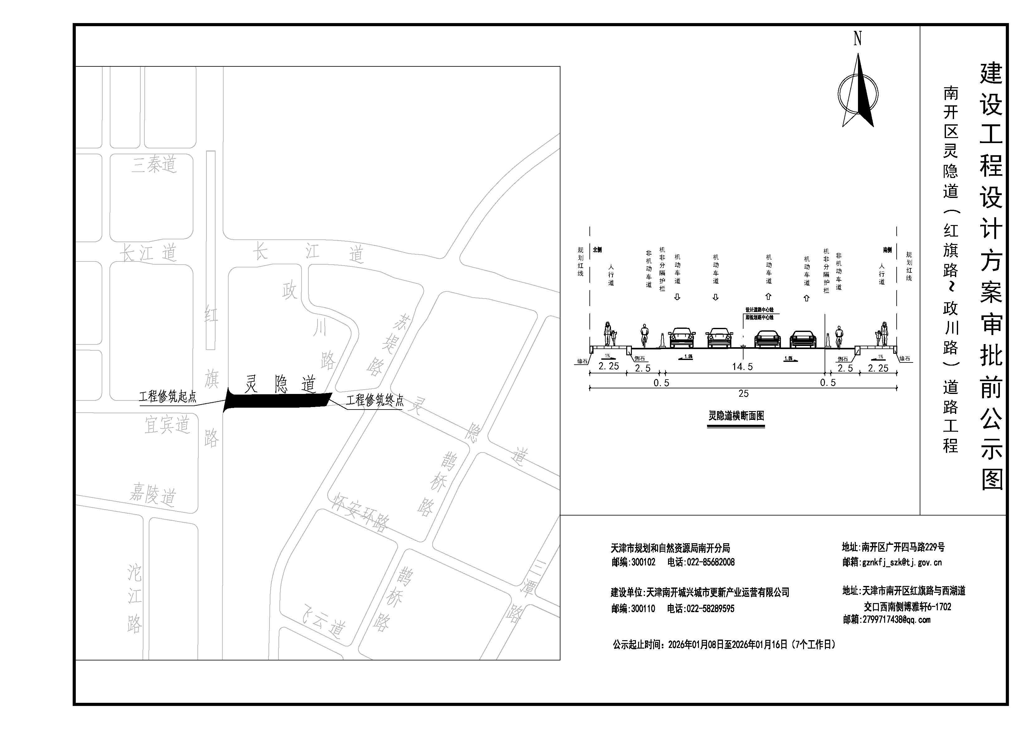 (南開區(qū))關(guān)于靈隱道(紅旗路-政川路)道路工程建設(shè)工程設(shè)計(jì)方案的公示-審批信息