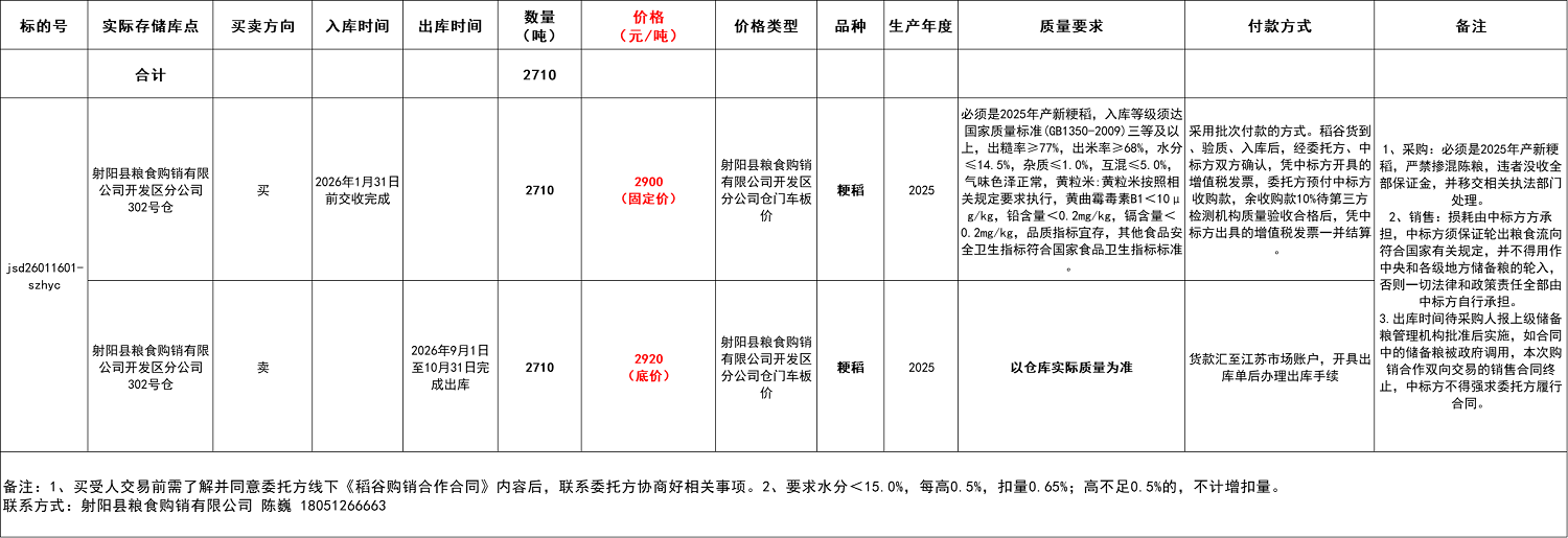 (一)本次交易采用國家糧食交易平臺購銷合作雙向競價功能實現,交易規(guī)則以本公告公示為準,實際系統(tǒng)操作解釋權歸江蘇市場所有。