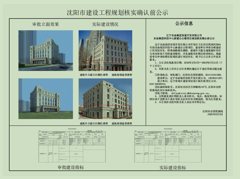 ******有限公司開發(fā)位于沈河區(qū)西濱河路******集團(tuán)科技中心新建辦公樓項目,建設(shè)單位申請辦理建設(shè)工程規(guī)劃核實,經(jīng)現(xiàn)場勘察及測繪,建筑外立面及建筑面積存在與規(guī)劃審批不符的建設(shè)情形,詳見建筑效果圖及經(jīng)濟(jì)指標(biāo)?,F(xiàn)建設(shè)單位申請按照實際現(xiàn)狀進(jìn)行規(guī)劃核實,現(xiàn)予以公示并公開征求意見。